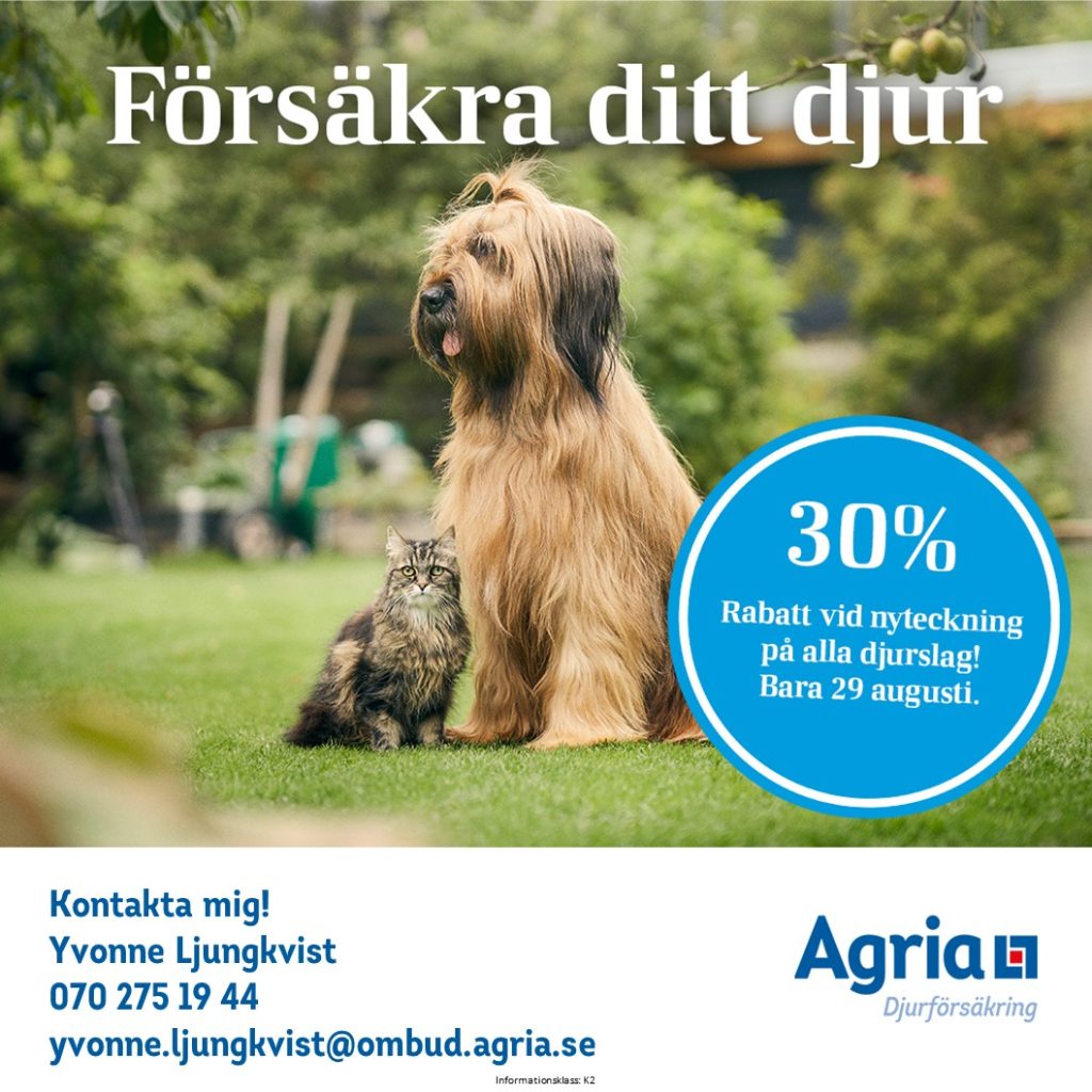 Passa på att försäkra era husdjur idag! Alla försäkringar som tecknas hos Yvonne gynnar Kattfotens Katthem! ❤?