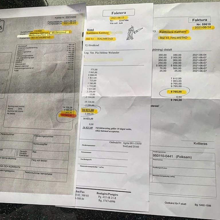 Sommaren för oss på katthemmet fortsätter som alla andra somrar. Nödrop om skadade, utmärglade, vanvårdade katter och hemlösa kattungar. Det tar tyvärr aldrig slut så länge inte ägare kastrerar och idmärker! Nedan ser ni ett axplock av katter som räddats sista tiden och räkningar från denna månaden. Vill ni stödja vår verksamhet så är vi oerhört tacksamma! ❣️??