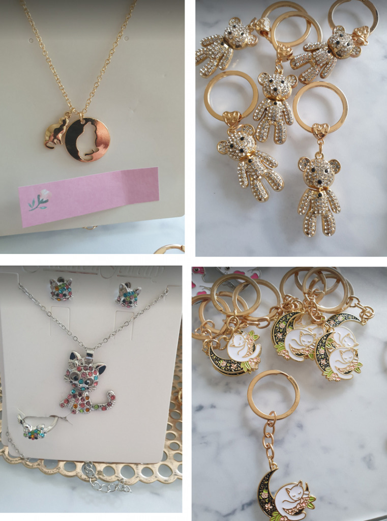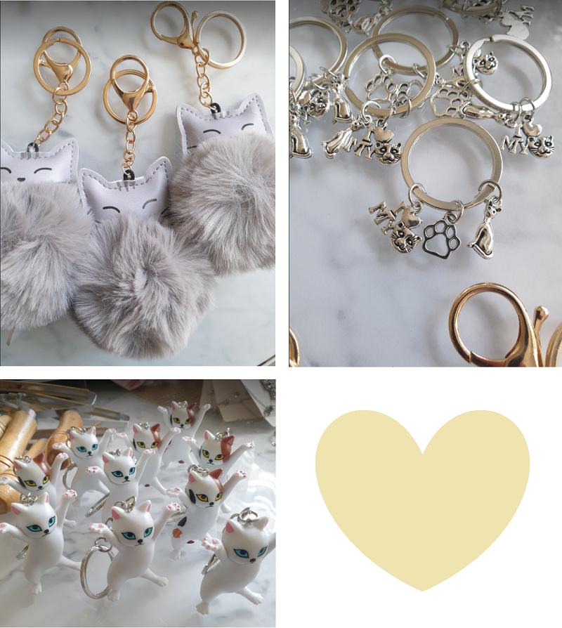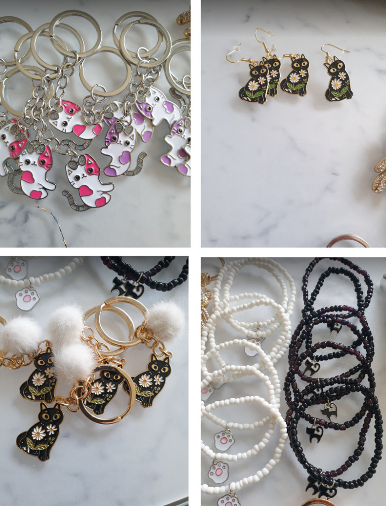 Smycken kommer säljas. Mestadels nyckelringar, men även fotlänkar, halsband. Allt med katter förstås ??