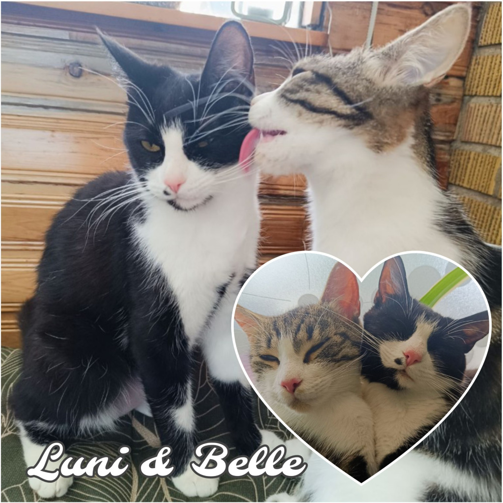 Vi heter Luni och Belle. I väntan pÃ¥ att fÃ¥ vÃ¥rt för alltid hem sÃ¥ gav människorna pÃ¥ katthemmet oss kel, kärlek och den omsorg som vi sÃ¥ väl behövde. Nu har vi hittat hem och vi är såå tillfreds och lyckliga!Â