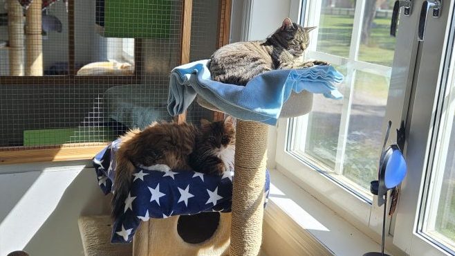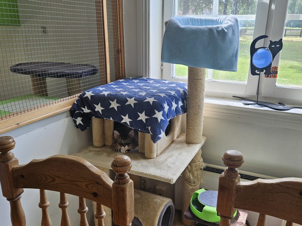 De har nu varit hos oss en längre tid och blir tryggare hela tiden. De är dock fortfarande skygga men mer lugna och nyfikna på oss tvåbenta.
