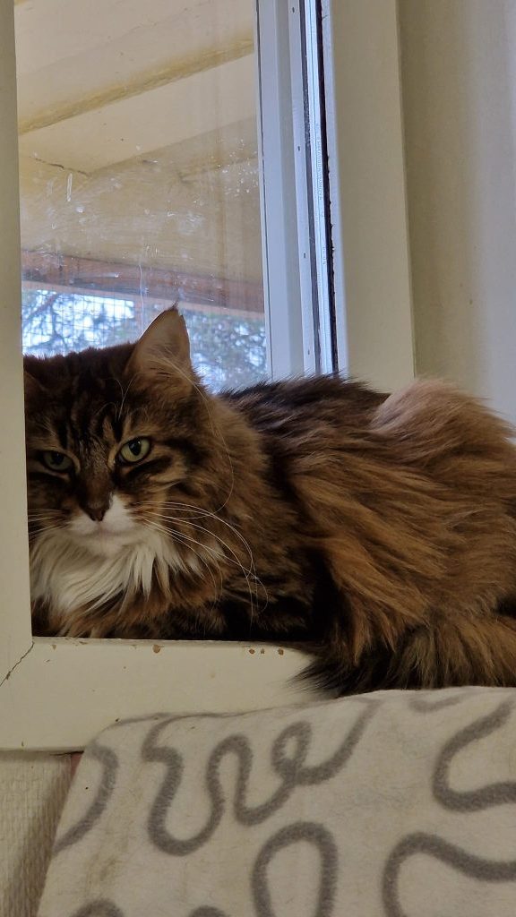 Bossen kom till katthemmet efter att ha hittats ute tillsammans med över tio andra katter, bland annat Flamman, Lovis och Undis.