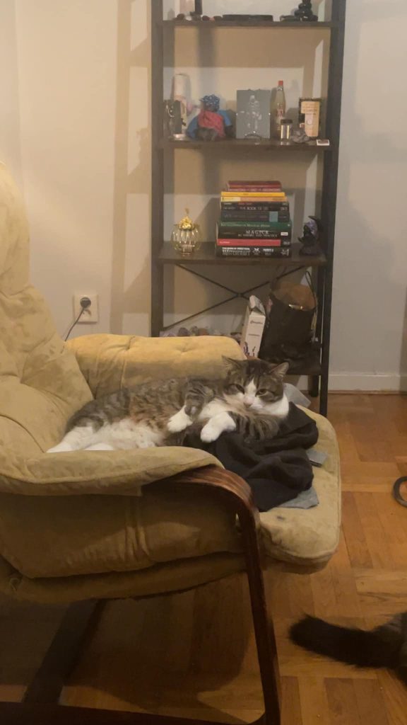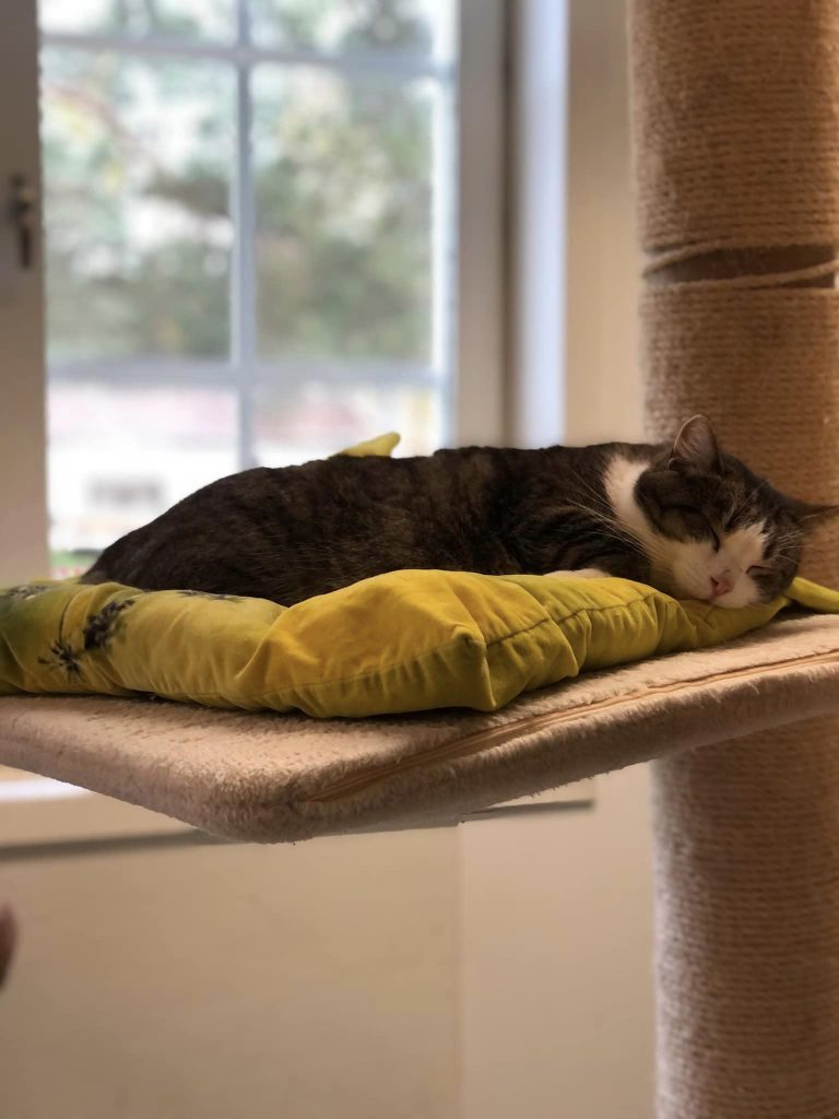 Charlie har varit väldigt skygg under tiden i jourhemmet, även när han flyttade till katthemmet har han varit skygg och försiktig. Det tog lång tid för honom att känna sig någorlunda trygg så det är först några månader efter flytten till katthemmet han har börjat visa sin nyfikna och ibland även lekfulla sida.