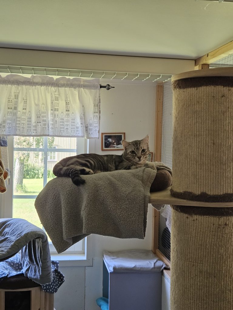 Elsa inkom tillsammans med bland annat Loke och 2 syskon till i början på 2024. De är alla tre ganska skygga fortfarande men vi ser små framsteg hela tiden. De blir mer och mer nyfikna på oss tvåbenta, framförallt när vi försöker leka med de. Vi misstänker att de hade blivit tryggare relativt snabbt om de fick hamna i ett bra hem där det finns massor med kärlek men också tålamod.