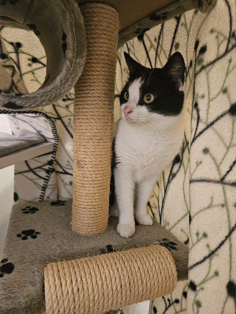 I nuläget vet vi inte riktigt hur han går ihop med andra katter då han är relativt nyinkommen och bor fortfarande ensam i karantänavdelningen.