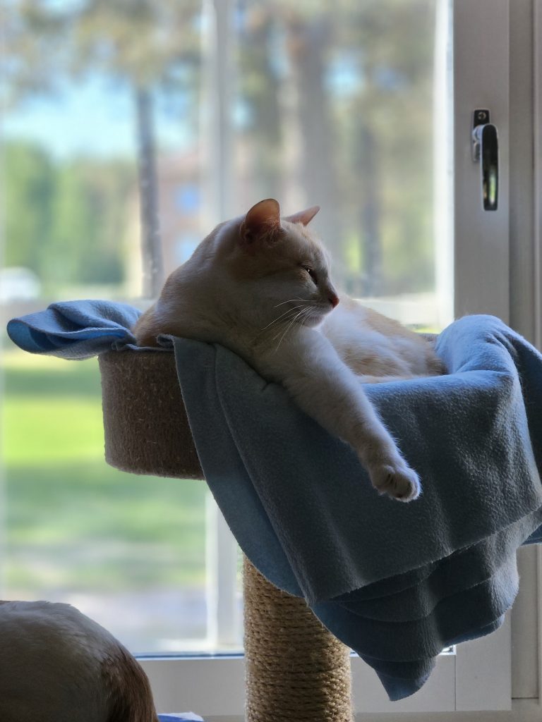 Kitten är en försiktig kille som ursprungligen kommer från Delsbo. Han var bara en kattunge när kullen hittades ensamma utanför en mataffär. Han hamnade hos ett jourhem där vi haft flera andra katter tidigare, bland annat Blixten. Där bodde dem en period innan de fick komma till katthemmet.