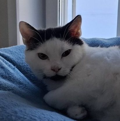 Han är en lugn kille på snart 1 år och har under sin tid hos oss varit väldigt lugn, accepterar att man kommer och klappar honom.