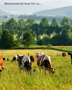 Regeringen har beslutat att det nuvarande beteskravet för kor ska fortsätta gälla. Det innebär att kor även framöver ska få gå ute på bete under sommarmånaderna. Läs mer i Tidningen Djurskyddet