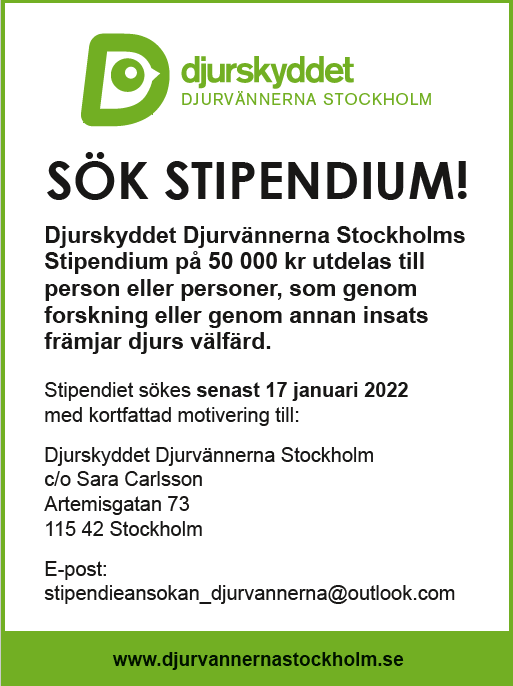 Styrelsen kan med stor glädje konstatera att många stipendie-ansökningar genom åren haft en hög kvalitet i såväl innehåll som mål och därmed väl uppfyllt stipendiets syfte att främja djurs välfärd.