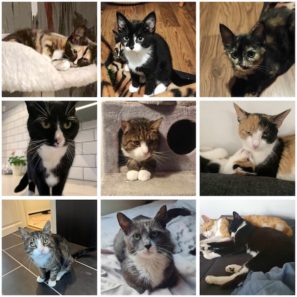 Just nu tar vi hand om 17 vuxna katter och 3 busiga kattungar i våra jourhem. Varje katt har sin egen unika personlighet och längtar efter ett tryggt och kärleksfullt hem.