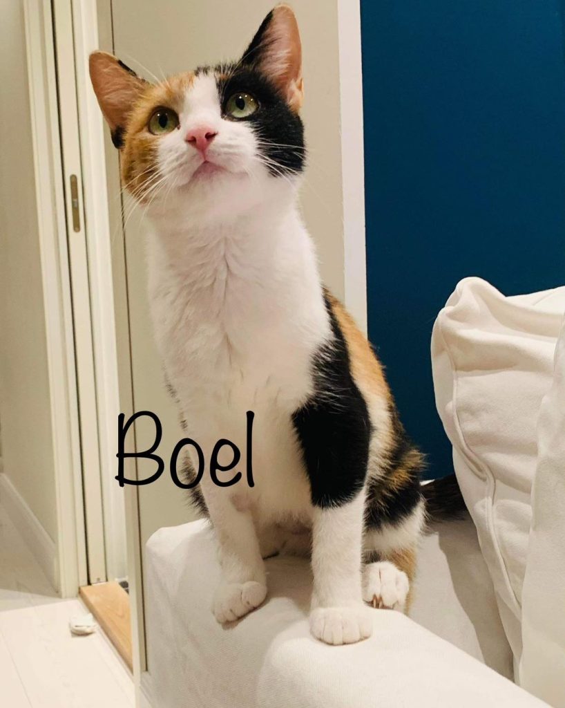 Boel var i dåligt skick när hon kom till oss, bara skinn och ben. Hennes förtroende för människor hade också tagit skada. I början fräste hon till jourhemmet varje gång de försökte ta kontakt, men hela tiden med kisande, snälla ögon. Hon ville gosa men vågade inte.