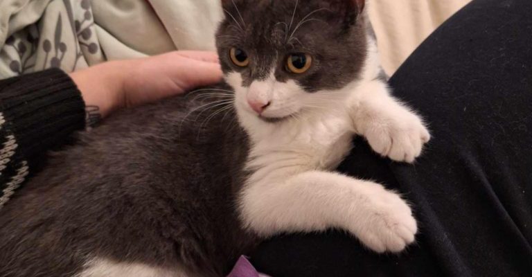 Domino hittades på en gård i Holmby och visade direkt vilken kelig och social kille han är. När han kom till sitt jourhem tog det inte lång tid innan...