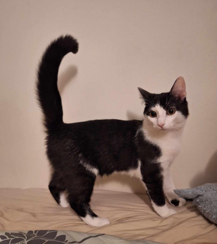 | Kan bo med barn: Vet ej Kan bo med hund: Vet ej Kan bo med katt: Ja Inne- eller utekatt: Att börja med innekatt Personlighet: Aktiv & självsäker, som älskar mycket stimulans | Kastrerad: Ja – 19 feb Vaccinerad: Ja – 19 feb ID-märkt: Ja med chip – 19 feb Försäkrad: Ja (olycksfall och veterinärvÃ¥rd upp till 40 000 kr) Adoptionsavgift: 1950 kr |