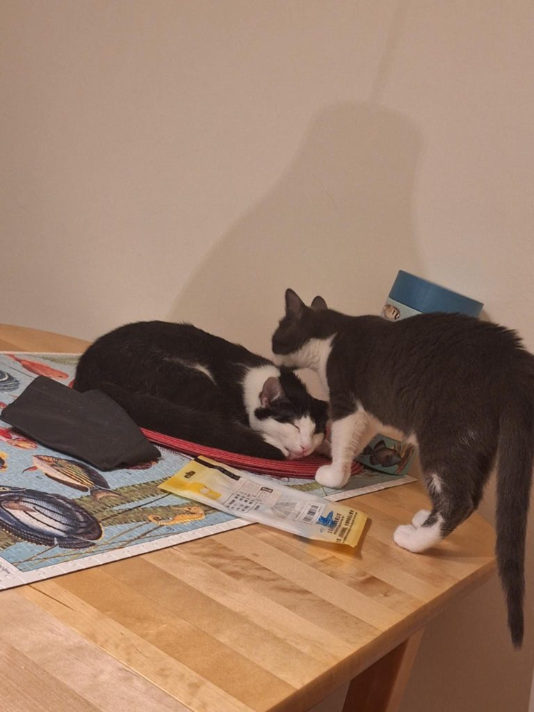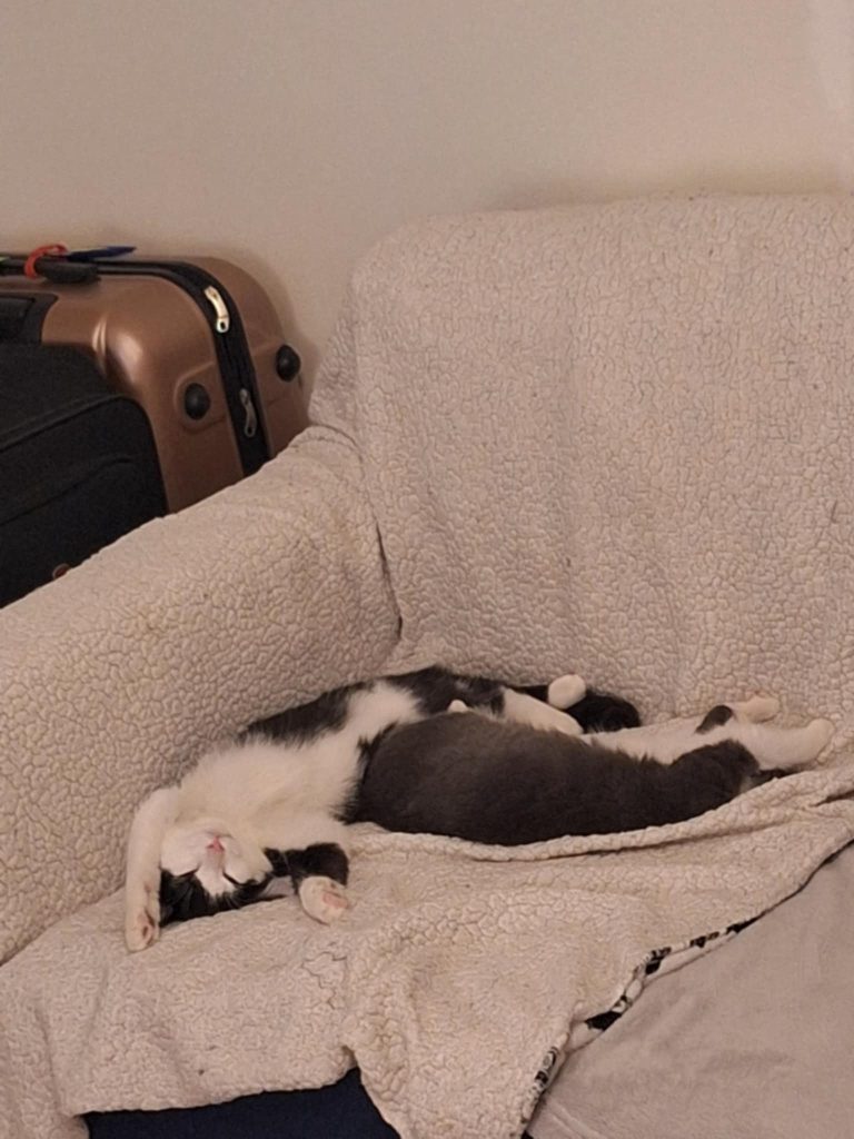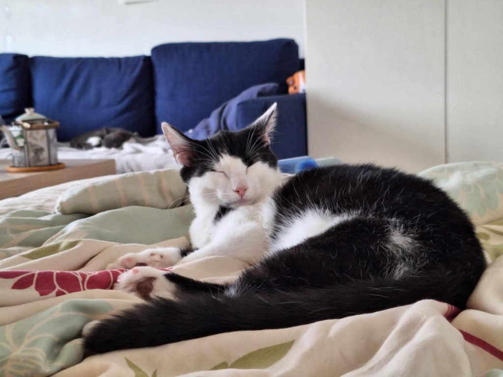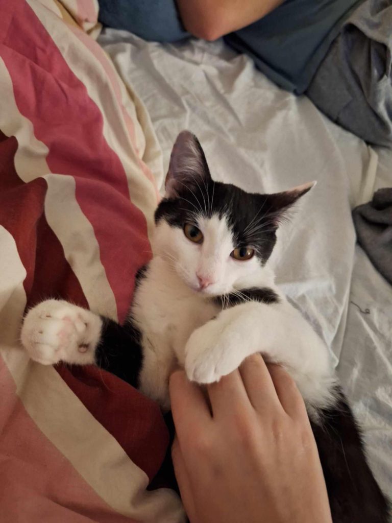 Celery är en av systrarna som kom till jourhemmet i december. Hon är väldigt självsäker och går genast fram till främlingar. Hon är inte rädd för någonting – inte ens dammsugaren! Hon är en sådan katt du alltid kan klappa, men hon är inte lika klängig som sin lillasyster Clover.