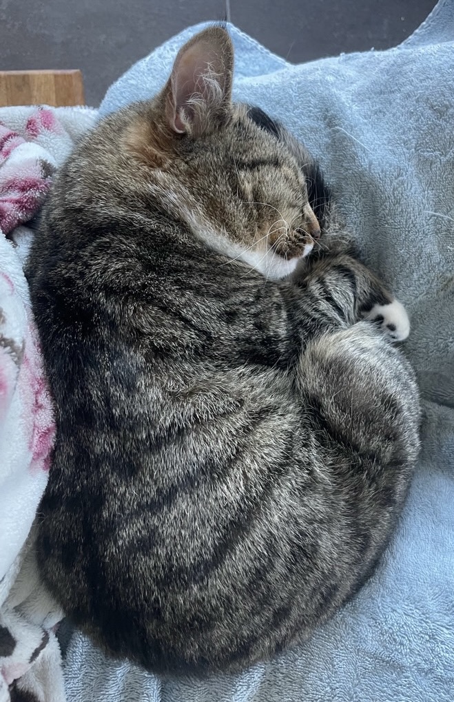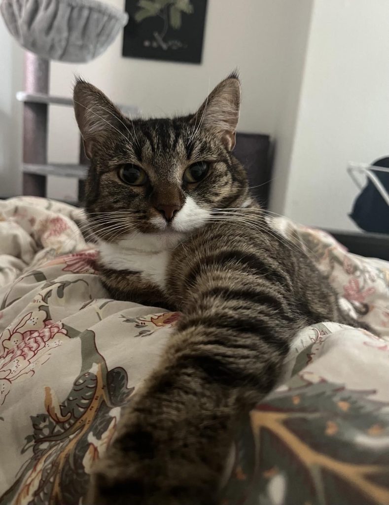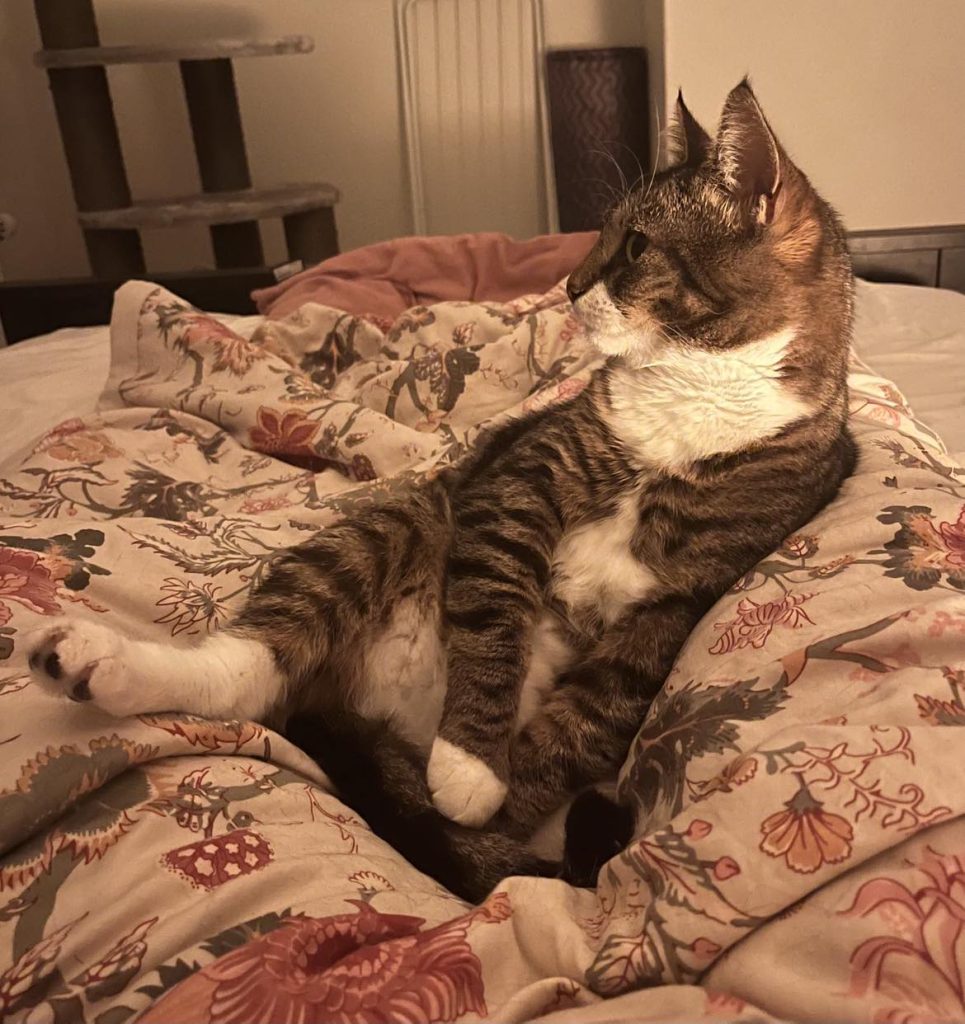 Maisy har nog haft det tufft, men hon har blommat ut till en härlig katt efter hand i sitt jourhem. Hon är en väldigt mysig katt, alltid pigg och väldigt kontaktsökande. Hon är mycket kelig och hoppar gärna upp i knät så fort hon får en chans. Vi tror hon gärna kommer att mysa och sova nära sin nya ägare så fort hon får möjlighet.