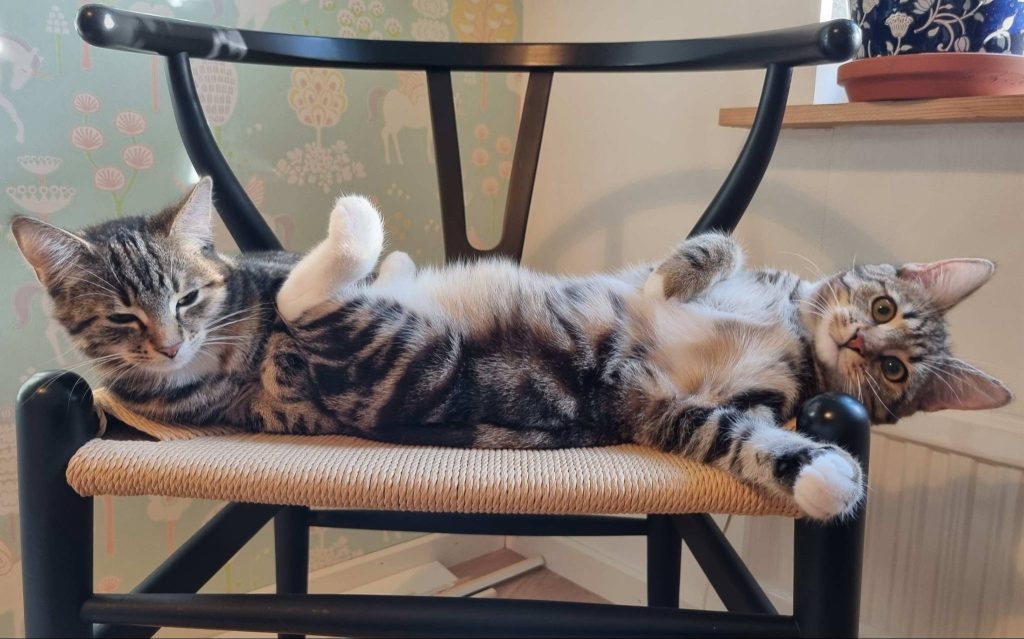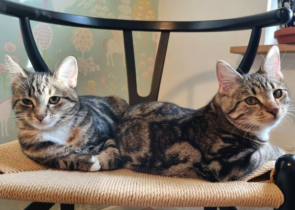 | Kan bo med barn: Ja Kan bo med hund: Ja Kan bo med katt: Ja Inne- eller utekatt: Inne/ute-katter med trygg utevistelse Personlighet: Vill ha gos och få vara med | Kastrerad: Ja Vaccinerad: Ja ID-märkt: Ja med chip Försäkrad: Ja (olycksfall och veterinärvård upp till 40 000 kr) Adoptionsavgift: 2500 kr för båda |