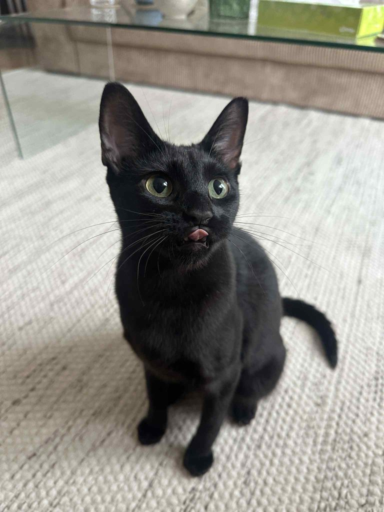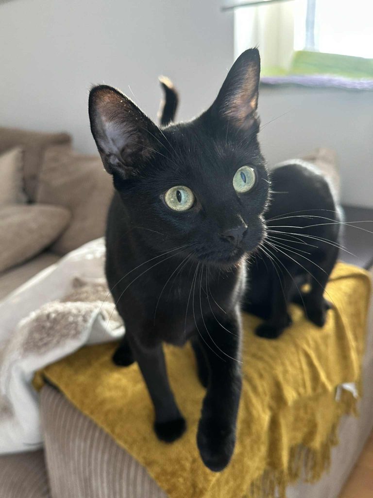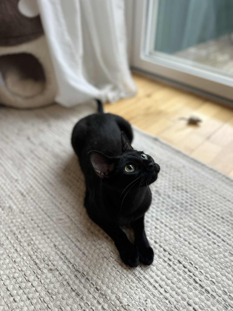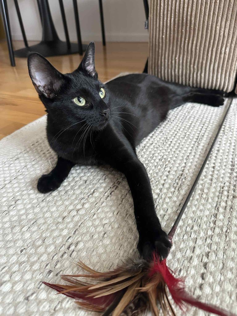 Till vardags är hon en lekfull och energisk katt med massor av spring i benen. Hon älskar att jaga leksaker, är extremt snabb och alltid redo för nästa äventyr. Nyfikenheten är också en stark sida och hon följer gärna efter överallt och är alltid först fram för att undersöka vad som döljer sig bakom öppna luckor och dörrar. När det kommer gäster visar hon sin sociala sida och hälsar glatt. Samtidigt har hon också lugnare stunder då hon gärna varvar ner och kryper upp bredvid en i soffan för lite närhet.