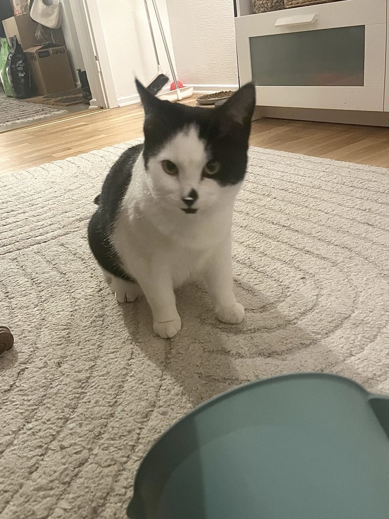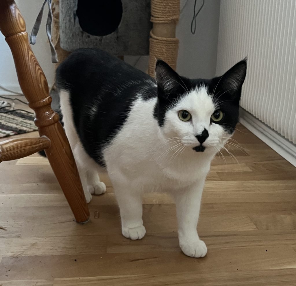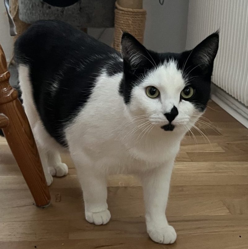 | Kan bo med barn: Äldre barn Kan bo med hund: Vet ej Kan bo med katt: Ja Inne- eller utekatt: Innekatt Personlighet: Nyfiken och busig | Kastrerad: Ja Vaccinerad: Ja ID-märkt: Ja med chip Försäkrad: Ja (olycksfall och veterinärvård upp till 40 000 kr) Adoptionsavgift: 1950 kr |