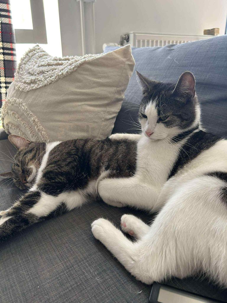 Luna och Legolas söker ett nytt hem då deras nuvarande ägare behöver flytta utomlands. De är två lugna, trevliga och behagliga katter. Dom är mycket tysta och smidiga och har tagit sig an hela huset. När dom först kom till sitt jourhem var dom lite skygga och avvaktande. Sakta har förtroendet byggts upp och dom blir mer och mer bekväma för var dag som går.