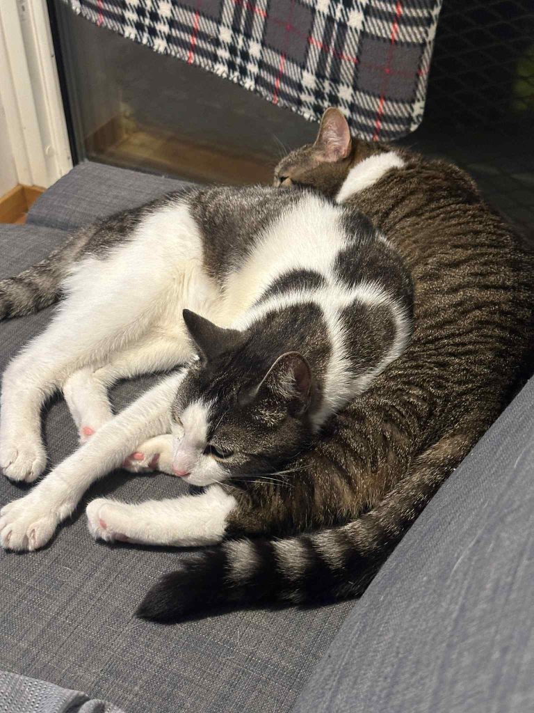 | Kan bo med barn: Ja Kan bo med hund: Vet ej Kan bo med katt: Troligen Inne- eller utekatt: De är vana vid att vara innekatter, men hade kunnat trivas med utevistelse också Personlighet: Lekfulla och gosiga | Kastrerad: Ja Vaccinerad: Ja ID-märkt: Ja med chip Försäkrad: Ja (olycksfall och veterinärvård upp till 40 000 kr) Adoptionsavgift: 3650 kr för båda |