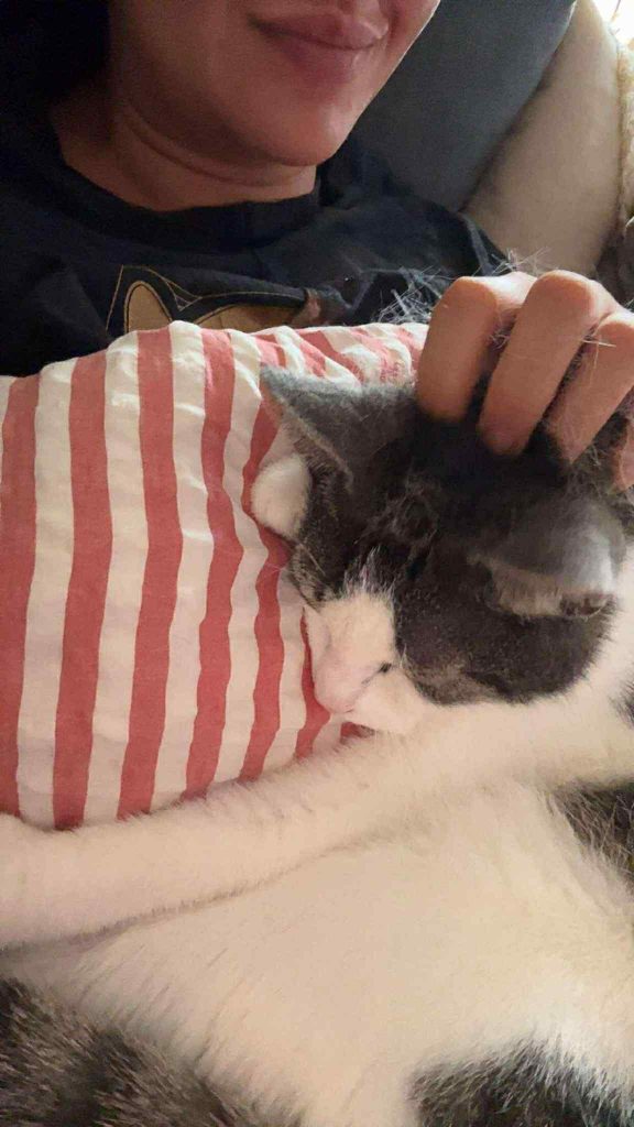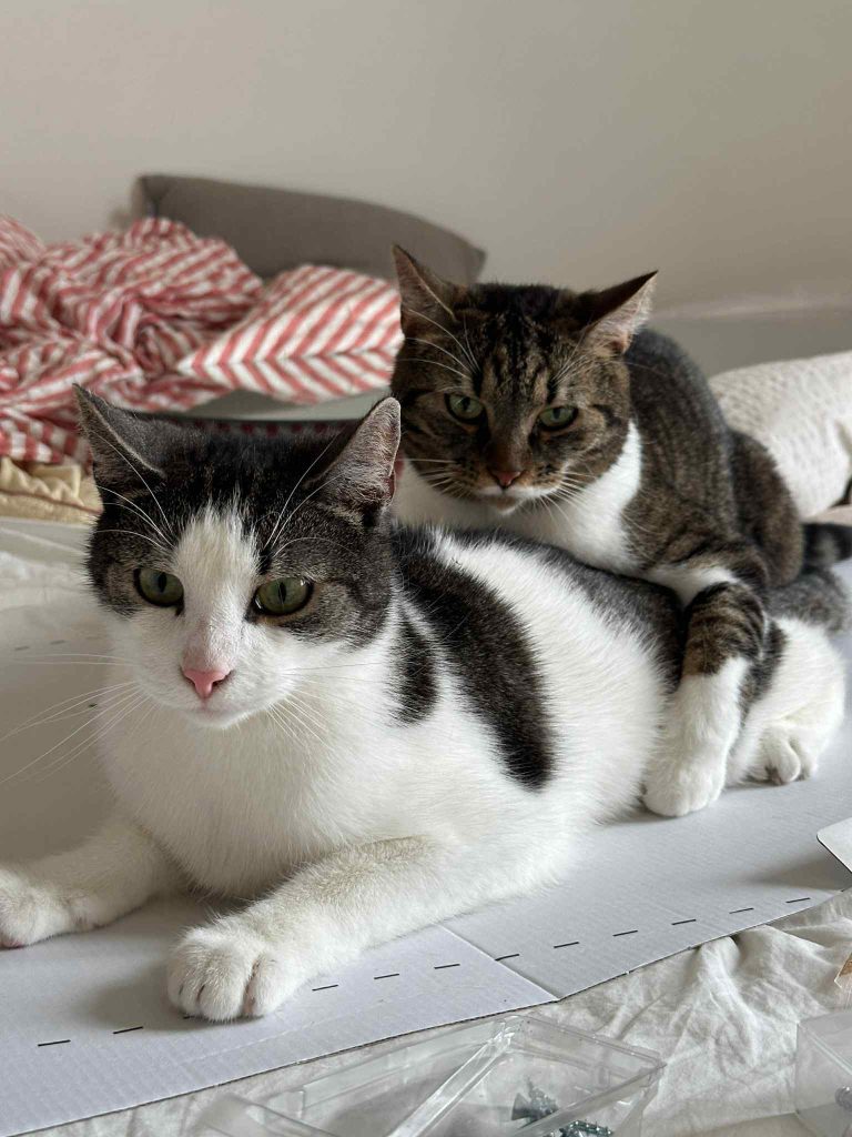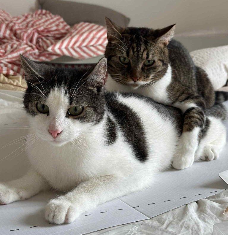 Båda katterna föredrar torrfoder framför blötfoder och Luna kommer och hämtar mig för att visa när skålen inte längre är full. Katterna är mycket fästa vid varandra och ligger gärna tätt ihop under vilan. Dom pysslar om varandra och kallar på varandra vid behov.