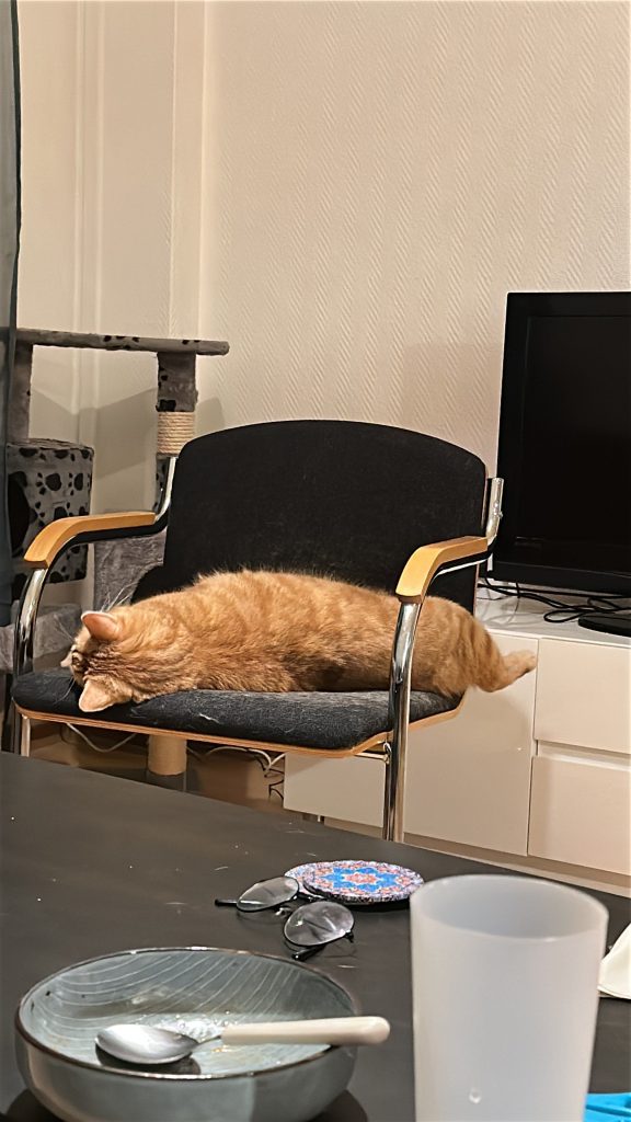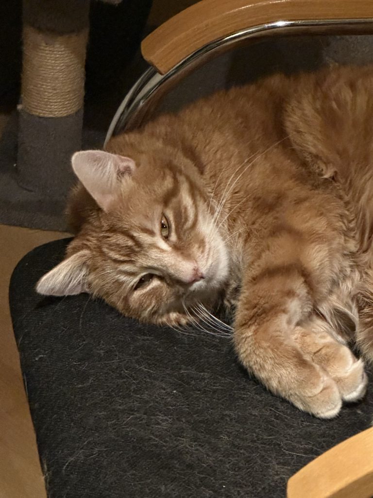 Zingo är en lugn och stillsam katt som älskar att ta det lugnt. Hans favoritsysselsättningar är att ligga och sola, sova, mysa och äta. Lite bus och lek uppskattar han också ibland, särskilt om det finns en leksak att jaga runt med.
