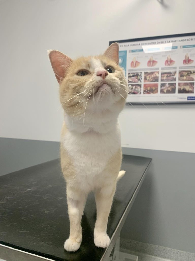Det innebär att hon är frisk nu. Hon klarar sig fin utan tänder men ska förstås äta mjukmat resten av livet. Dock behöver hon en operation till för att ta bort delar av några rötter, hon står i kö för den operationen nu och den är betald av vår förening. Vi ser gärna att Luna flyttar till sitt för-alltid-hem innan sista operationen och blir trygg där först innan nästa operation. Man börjar då som hennes jourhem och vi står för alla kostnader tills hon har läkt helt så att vi också kan se stöd och råd. Sedan går köpet igenom. Detta beror på att vi inte vill att Luna ska rota sig för mycket i sitt tillfälliga jourhem nu.