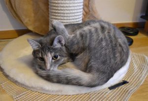 Här kommer en hälsning från Cajsa och hennes nya familj. Hon har bott hos oss nu i snart två månader. Till att börja med var Cajsa väldigt försiktig. Hon spenderade den mesta av sin tid under vår säng. Efter några veckor med mycket busande och krusande från oss lät hon sig klappas. Nu njuter hon av att bli klappad och vi ska göra det länge om hon får bestämma! 😉