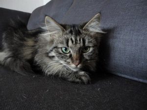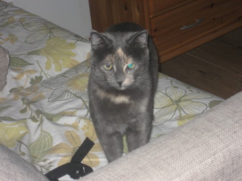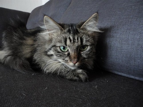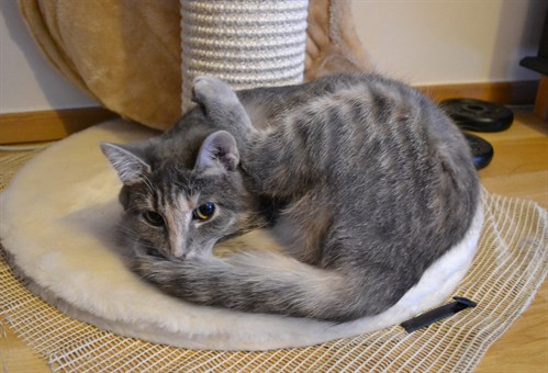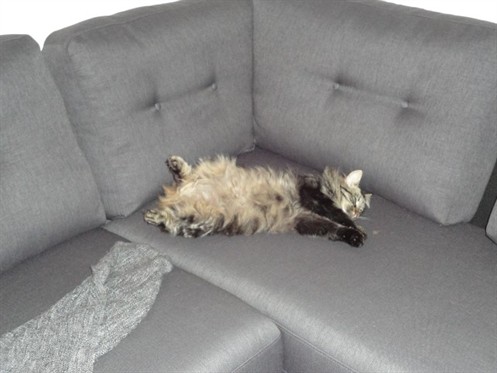 Ber om ursäkt för att det tagit mig så länge att få iväg ett mail till er, men jag ville att Silje, fd Maggie, och jag skulle få vänja oss riktigt med varandra först. Silje var ju en väldigt försiktig och försynt katt när jag hämtade henne och hon är fortfarande väldigt skygg mot människor hon inte känner igen. Hon verkar dock ha vant sig vid att dela sitt hem med mig och min pojkvän har vunnit hennes hjärta helt och hållet.