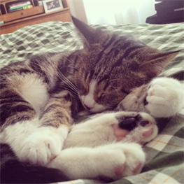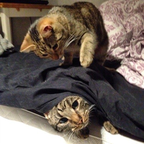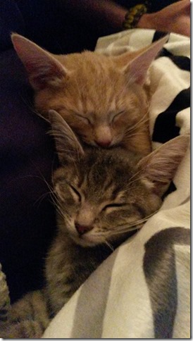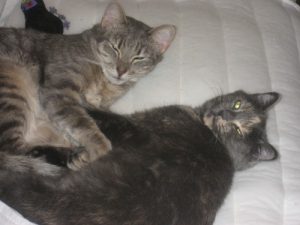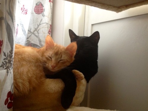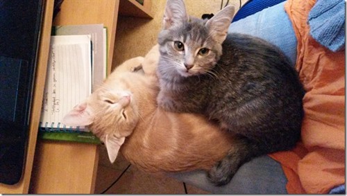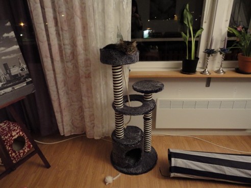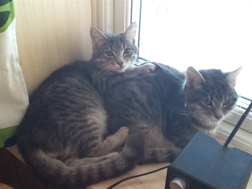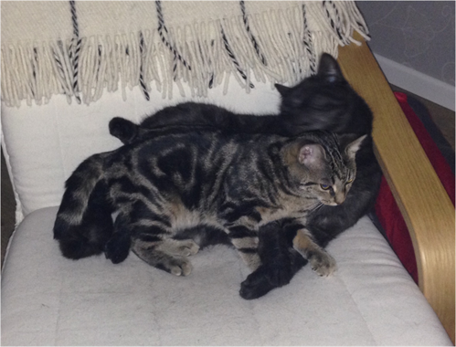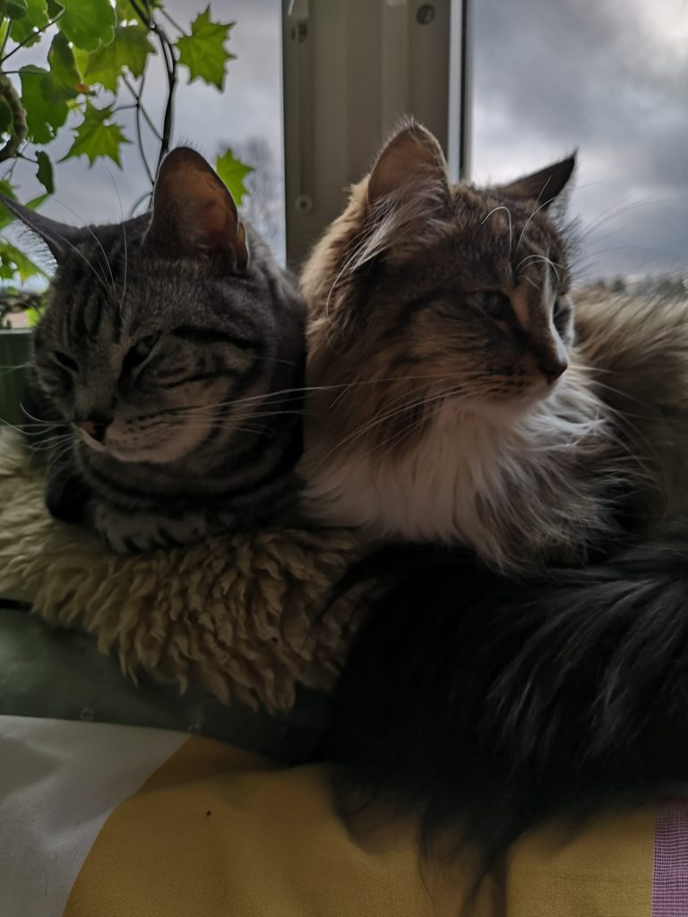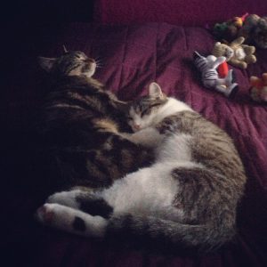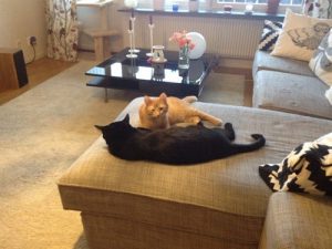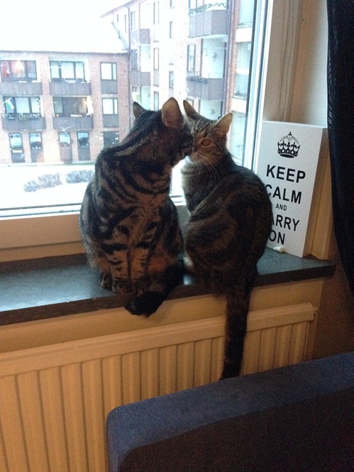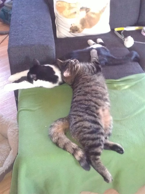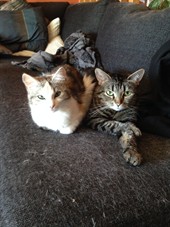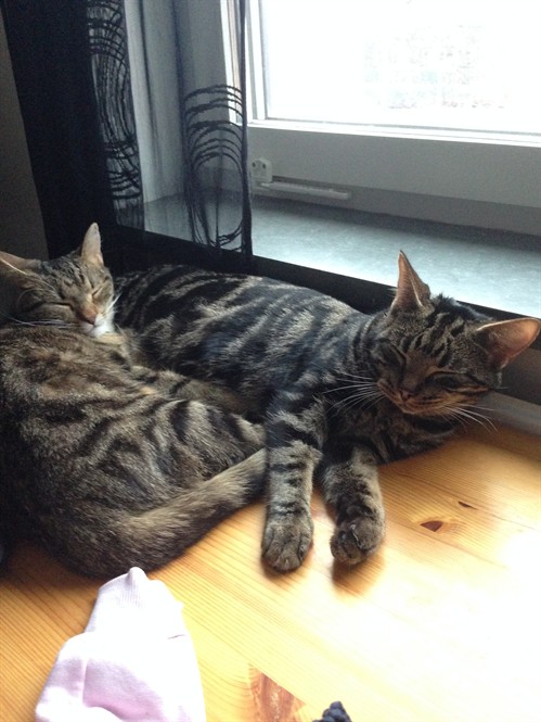 Båda mår bra och har hittat precis vilka ställen i min lilla lägenhet som är de bästa sovplatserna, även om det ibland blir bråk om vem som ska få ligga längst upp på kattornet.