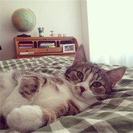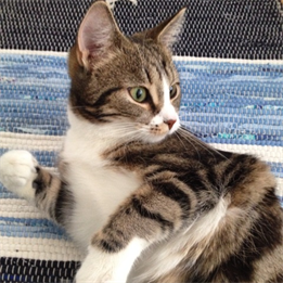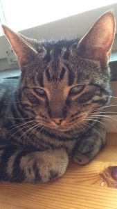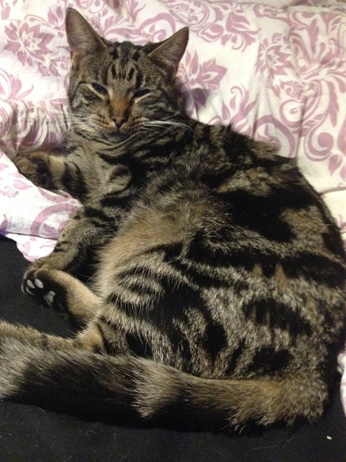 Oskar älskar att bli klappad & att gosa, en riktig kelgris som gillar att ligga antingen i min säng eller i soffan.