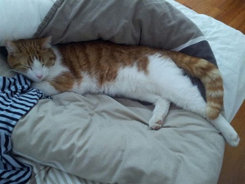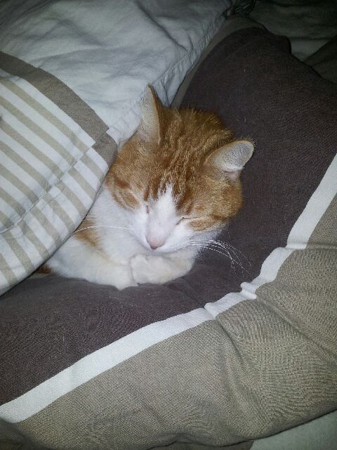 Hans favorit är Husse men han är ju också hemma alla fm. Favoritsovplatsen är i vår säng.