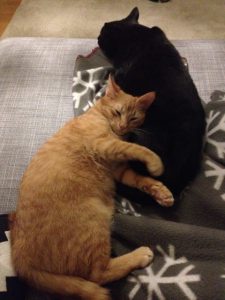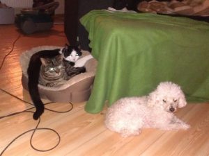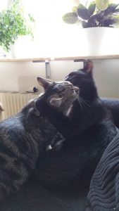 Oskar är bästis med Alfons som bodde här sen innan, de brottas & busar & sover tillsammans 🙂