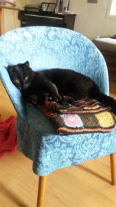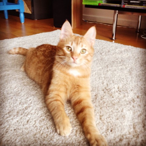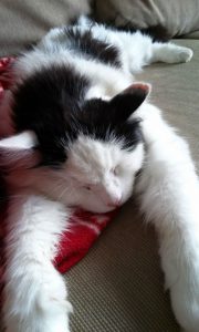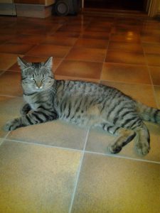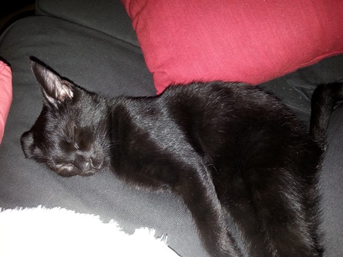 Pascal verkar trivas jättebra hos oss och vi trivs jättebra med honom. Han är mest ute men kommer hem några gånger per dag. På kvällen ligger han ofta och myser med oss i soffan.