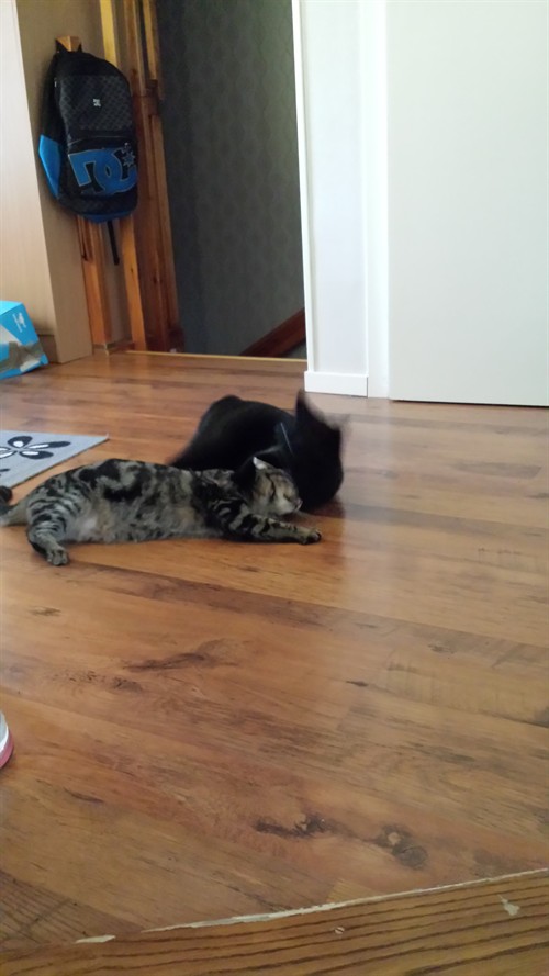 Redan efter 1 dag de började gilla varandra. De gör flesta av de saker tillsammans, och de leker också! Måns är riktigt trevlig och snäll, och han gillar att bli klappad av oss, samt Momo gör. Momo är en mycket snäll katt också, som har accepterat Måns mycket snabbt.