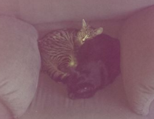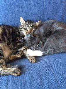 Pelle och Tuttan i sitt nya hem. Tuttan kastade sig över varje mm av huset och strök sig. Pelle är galet gosig, men ängslades över miljöbyte. De är båda alldeles underbara. /Anders och Maria