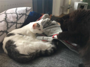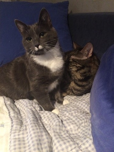 Hej! Här kommer en hälsning från Linus, dåvarande Edmund. Han lever livet i Själevad med bästa kompisen Nisse. Linus beundrar Nisse och tar efter honom i allt, ligger gärna så nära som möjligt och om Nisse tillåter så lägger Linus gärna tassen på Nisses svans och sedan spinner han så hela huset vibrerar. Linus är en riktig musjägare, han tar även in sina byten och lämnar i mattes och husse säng (samt äter upp dem, därav den lilla magen men sakta men säkert ska nog även den kunna trimmas ner). En snällare katt än Linus har vi aldrig mött!