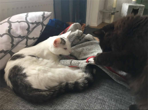 Birk kommer bra överens med Zandor. De leker och busar tillsammans. Inget tjafs eller fräsande alls. Zandor har levt upp lite mer sedan Birk kom hit.