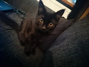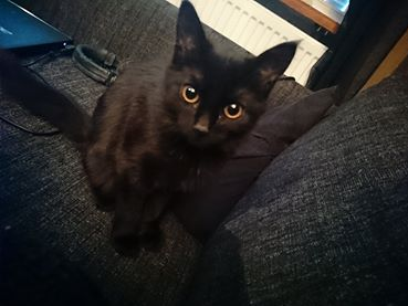 Här kommer en bild på Zorro/Sid som vi tog från er 2014. Liten, skygg och eländig var han då. Nu glad och krävande! Undrar så hur det gick för hans syskon i Z kullen. Sid är tabby, kamraten Ture svart. Hälsningar Åsa och Bertil