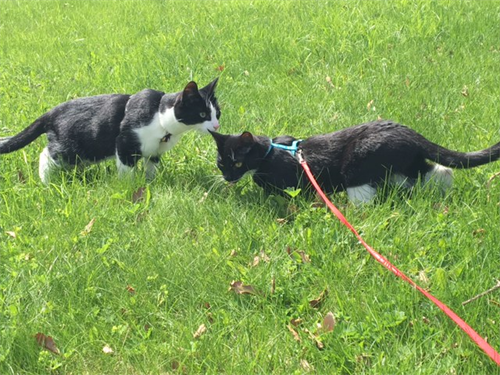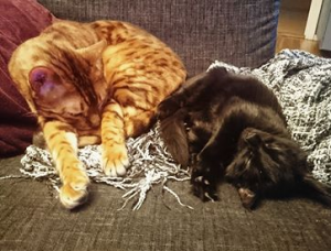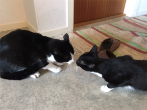 Efter ett par dagar så kände han sig hemmastadd och kattkompisen Zed har accepterat han så nu har de börjat vara med varandra lite.
