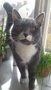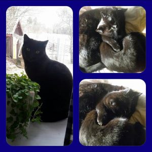 Det är ju ett helt år sedan hon fick flytta hit till oss i Boda. Hon är en mysig liten kisse – lugn, lite försiktig o lågmäld och väldigt älskvärd. Hon o Zigge håller ihop i vått och torrt, dag som natt 🙂 På ena bilden sitter hon i köksfönstret (ett favoritställe eftersom det har direkt utsikt mot fågelbordet) o på de andra har hon krupit upp i famnen på Zigge.