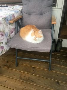 Maja har anpassat sig väldigt snabbt och bra, är nu altanvakt, väldigt mycket att hålla reda på! Gosar och spinner och äter och jobbar på altanen. Sover hos oss i sängen hela natten. Vi är helt förälskade i vår Maja, och jag vet att det är ömsesidigt!