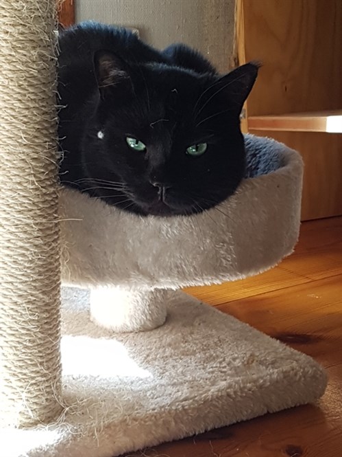 nyfiken när jag får besök och ligger och solar på altanen när han vill.