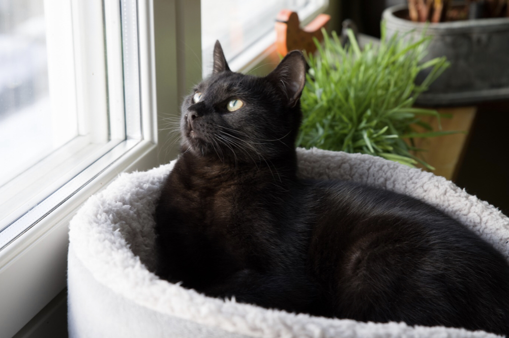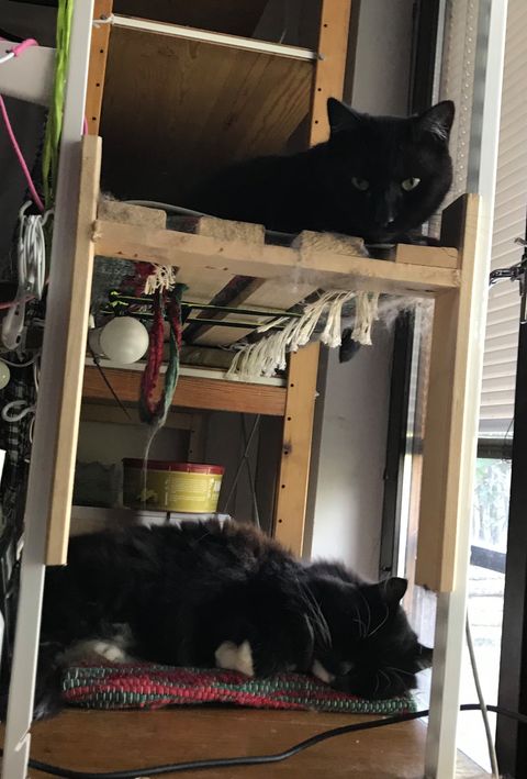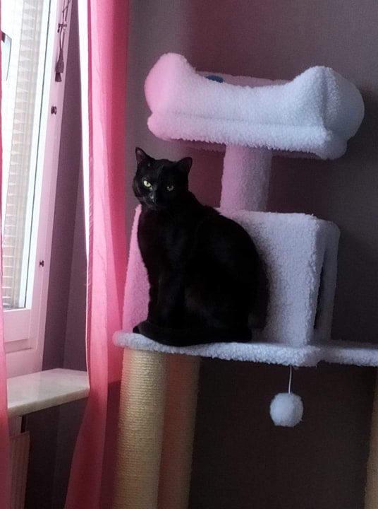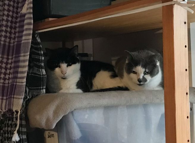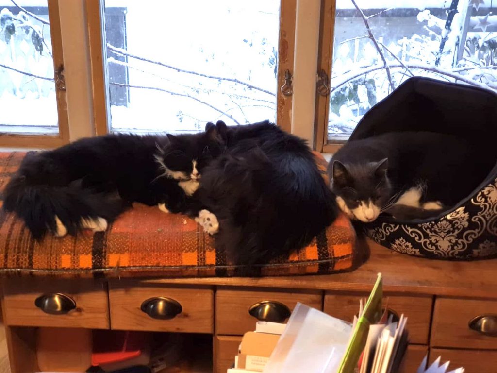 Här är Prospero och hans tre damer. Prospero är 15 år och är född här, men när både hans bror och hans moster dog under 2019 blev han väldigt ensam. Så jag vände mig till Katthemmet för att ge honom en ny familj. Jag tänkte att även de skyggaste katterna behöver ett hem, så det blev två av dem som hade varit där längst som fick komma med hem. Freja och Hilja var inte helt nöjda med att få en ny människa, men de tyckte att Prospero var toppen! Några månader senare insåg jag att Freja ju hade en syster kvar på Katthemmet, och att hon började närma sig att ha varit där i fem år, så i november 2019 fick även Frigga (som hette Flinga när hon bodde på Katthemmet) flytta hit. Nu har damerna varit här i lite över ett år. Frigga och Freja är fortfarande inte helt övertygade om att människor är alldeles nödvändiga. Hilja hade en liten rymmartur under hösten, men gick ganska snabbt i den fälla jag fick låna från Katthemmet. Av damerna är det Hilja som tycker om att gosa och bli klappad, men hon har fortfarande mycket flyktbeteende i sig. Så blir det ju när man väljer de tre skyggaste katterna på hela Katthemmet. Här finns ju också ett monster, en newfoundlandshund som heter Balder. Damerna anser nog att livet skulle vara något mindre läskigt om inte han var här. Men Prospero har blivit kung här hemma. Damerna dyrkar honom och han är mycket nöjd med sin nya familj. ![]()