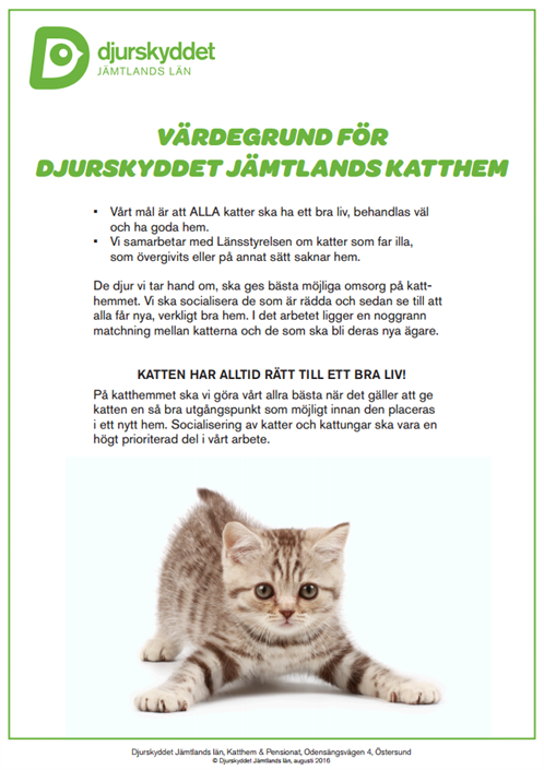Katter har tyvärr fortfarande låg status i samhället och de behandlas därefter. Man räknar med att det finns över 100 000 övergivna och hemlösa katter i Sverige. Mot denna bakgrund driver vår förening sedan den 1 december 2012 ett katthem i egen regi.