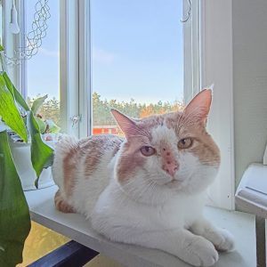 Amos har nu börjat öppnat upp sig ordentligt och blivit väldigt gosig med oss på djurhemmet.