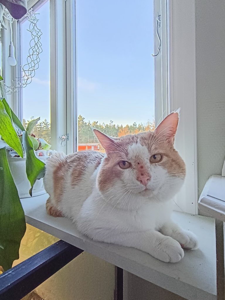 Söker nu ett nytt hem pga av att ägarens bortgång, En lugn och artig katt som visar stor tillgivenhet när han fått känna in sin nya person. Önskar helst kvinnlig ägare då han upplevs lite misstänksam vid möte med män. Önskar ett lugnt hem på landet utan andra djur och barn. Ska vara innekatt en längre tid och inte gå ut förrän han är helt trygg i sitt nya hem. Han är nöjd med att sitta i ett fönster och titta. Är inte särskilt intresserad av att gå ut i dagsläget.