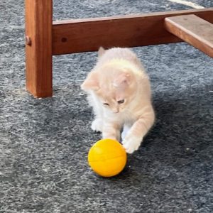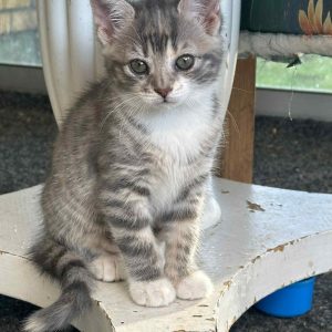 Han är en svart och vit kille som är väldigt sällskapssjuk och vill vara med och kolla vad man gör. Behöver komma till ett lugnt hem utan andra djur. Ska komma till landet så han kan gå ut om han vill efter att han bott in sig ordentligt.