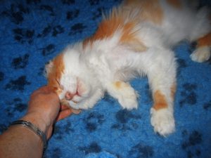 – Man kunde höra att han grejade i köket, åt och drack, men han ville varken synas eller höras, om han märkte att man var på väg försvann han direkt. Men efter ett par veckor började han sova utanför badrummmet. Och så småning om lät han sig bli klappad. Det var en långsam process som hela tiden gick framåt. Vi tog det i Micis takt, säger Cecilia,