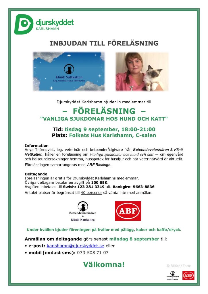 Anmälan görs senast måndag 8 september till e-post: karlshamn@djurskyddet.se eller mobil: (endast sms): 073-508 71 07